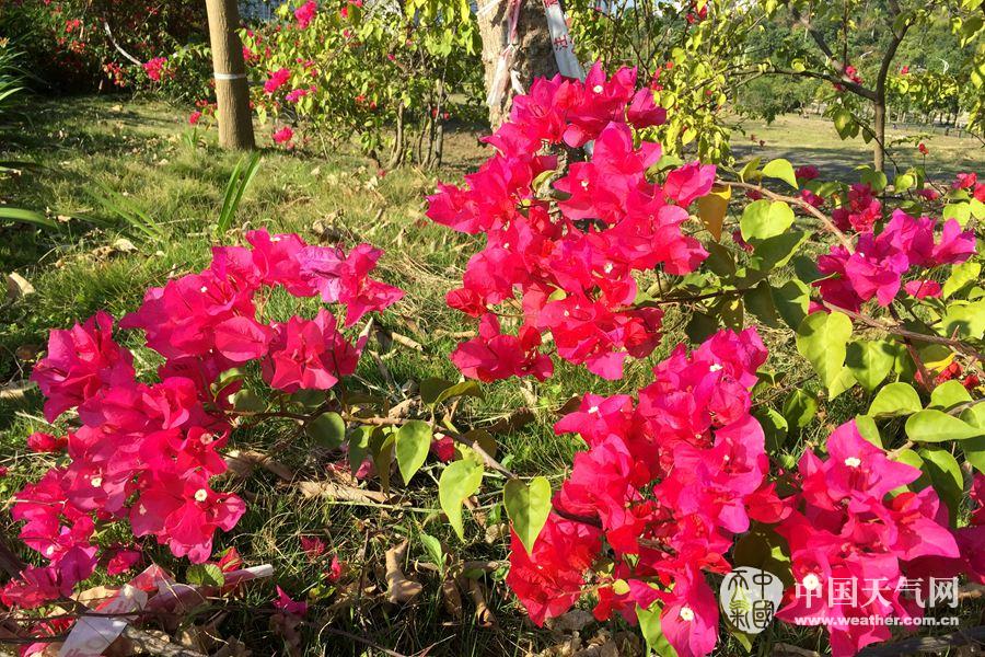 暖阳里路边娇艳绽放的三角梅(摄影:唐晓珊)