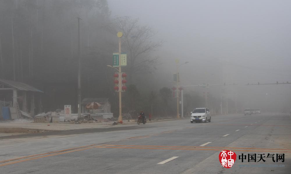 大雾弥漫 来往车辆开着大灯减速慢行(摄影:韦浩年)