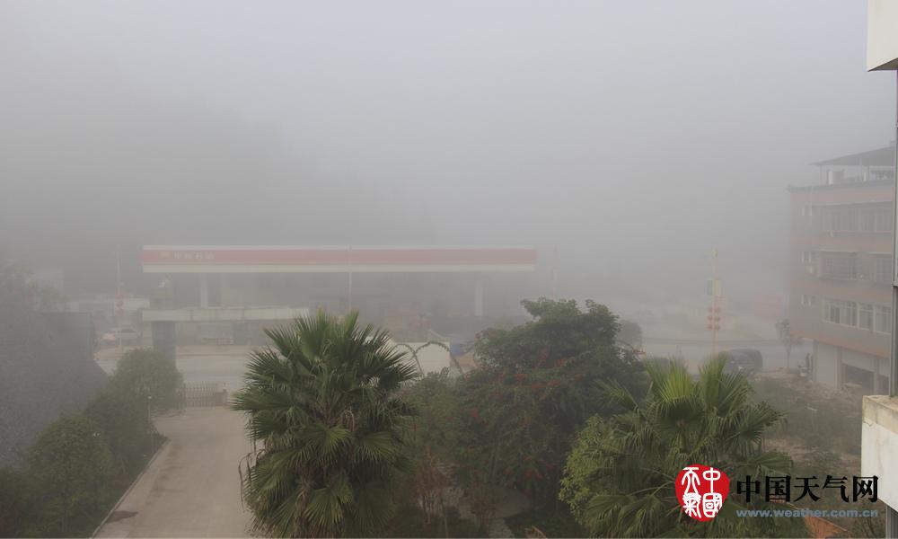 马路对面的加油站若隐若现(摄影:韦浩年)