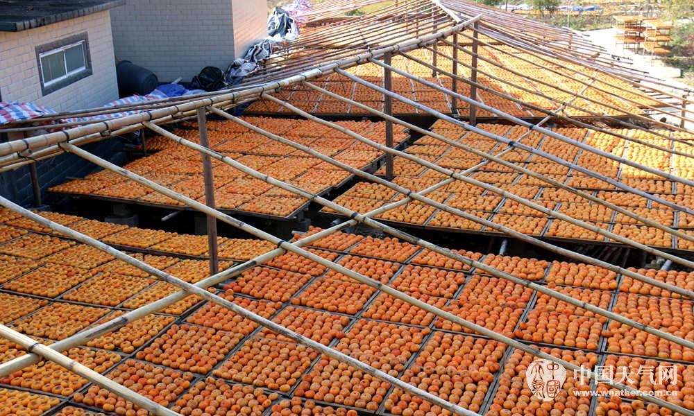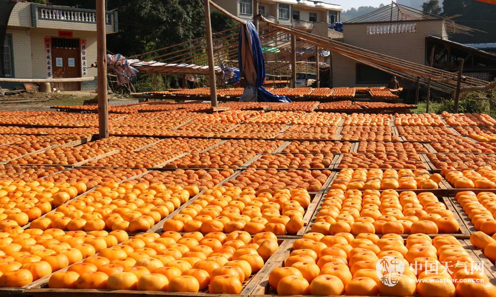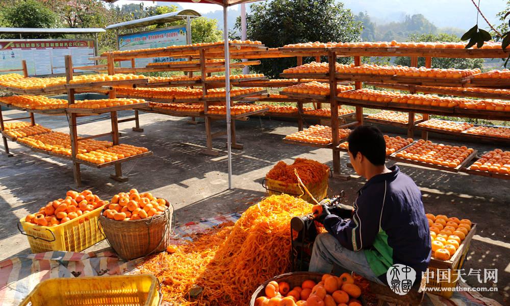 阳光下黄澄澄的柿子入筛了(摄影:何建坤)