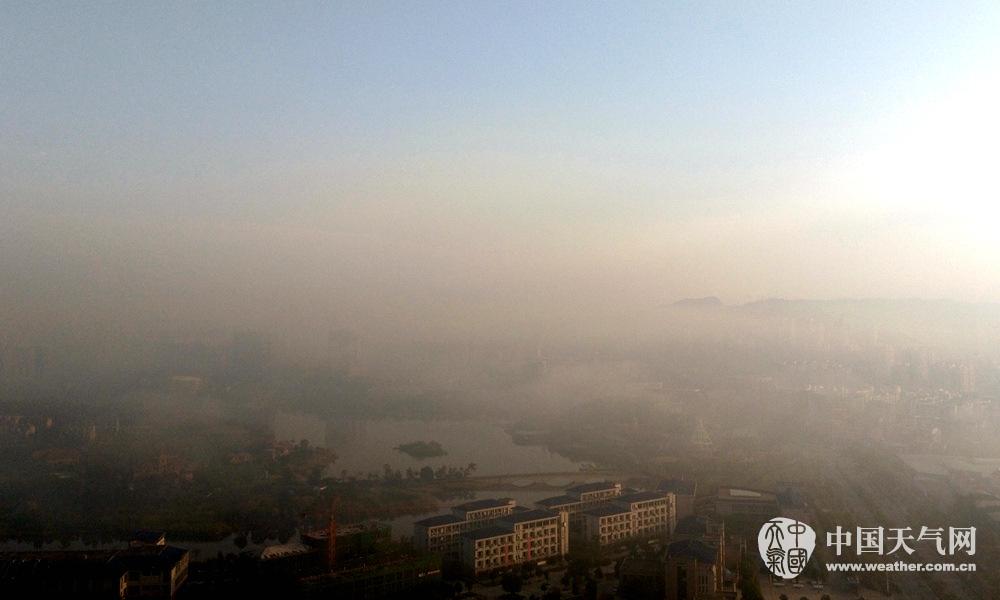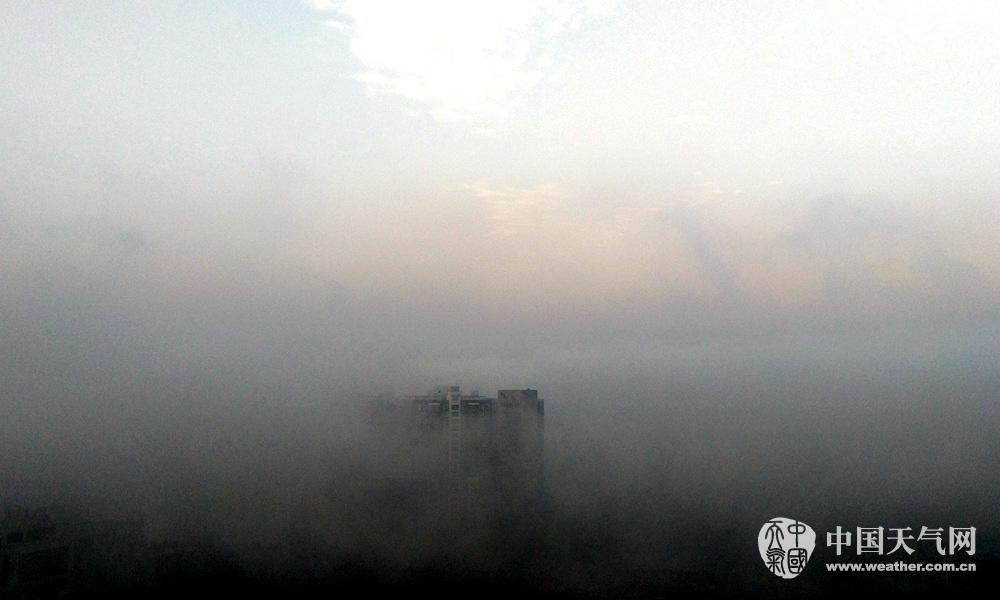 雾气在楼宇间缭绕(摄影:孙小龙)