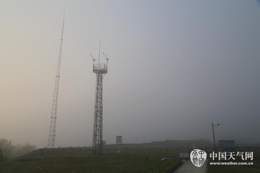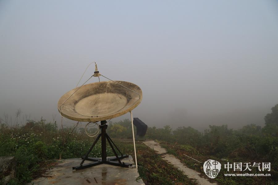 被大雾包围的卫星接收站。(摄影:卢保英)