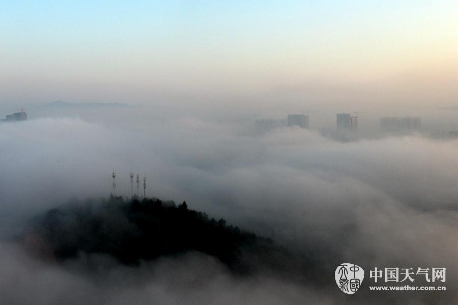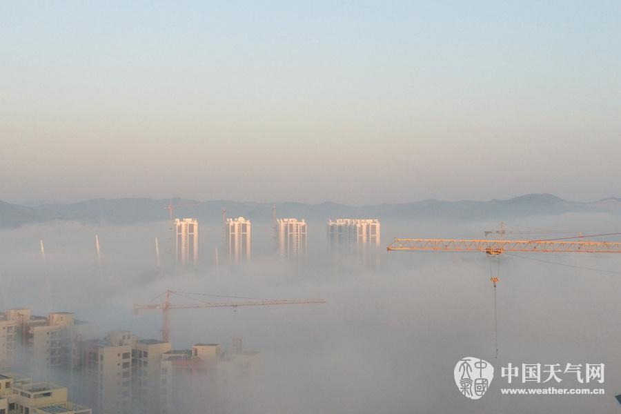 梧州市区楼房仿佛在雾中“漂浮”。(摄影:梁文希)