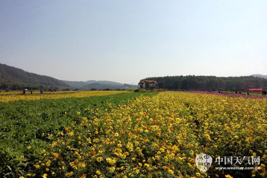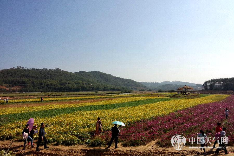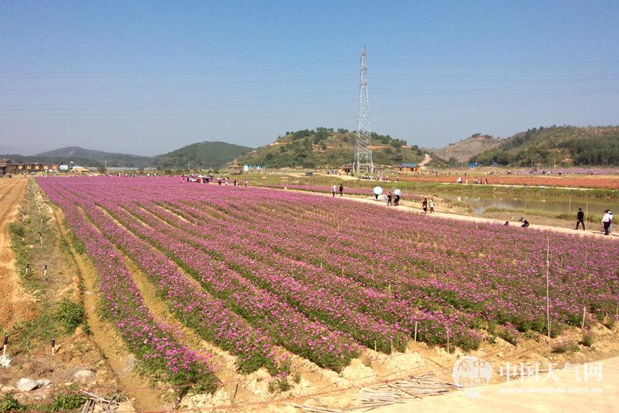 不同颜色的菊花整齐地铺在大地上。(摄影:聂沛彬)