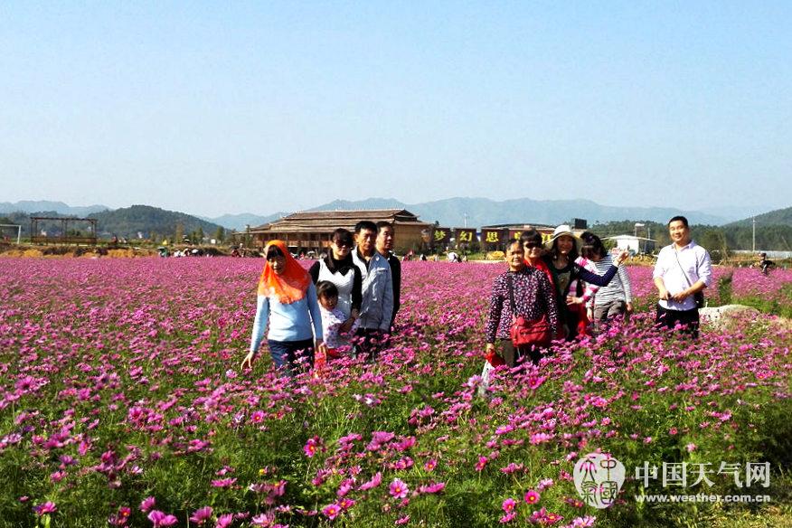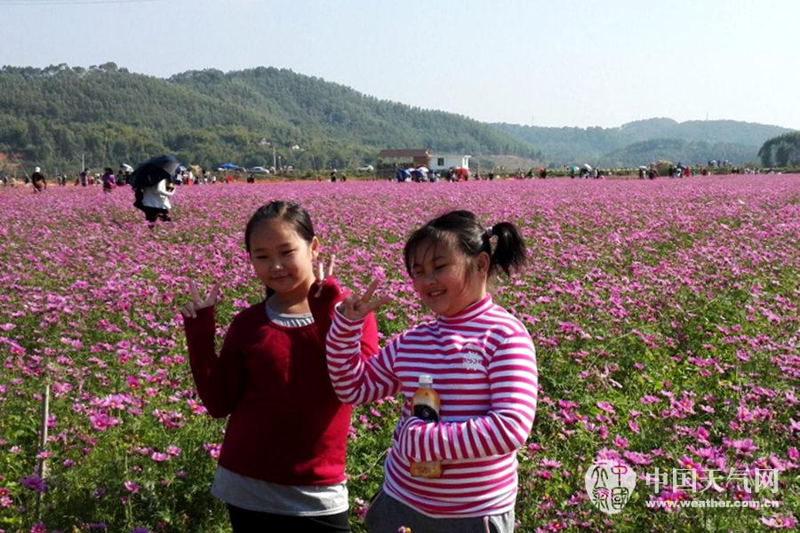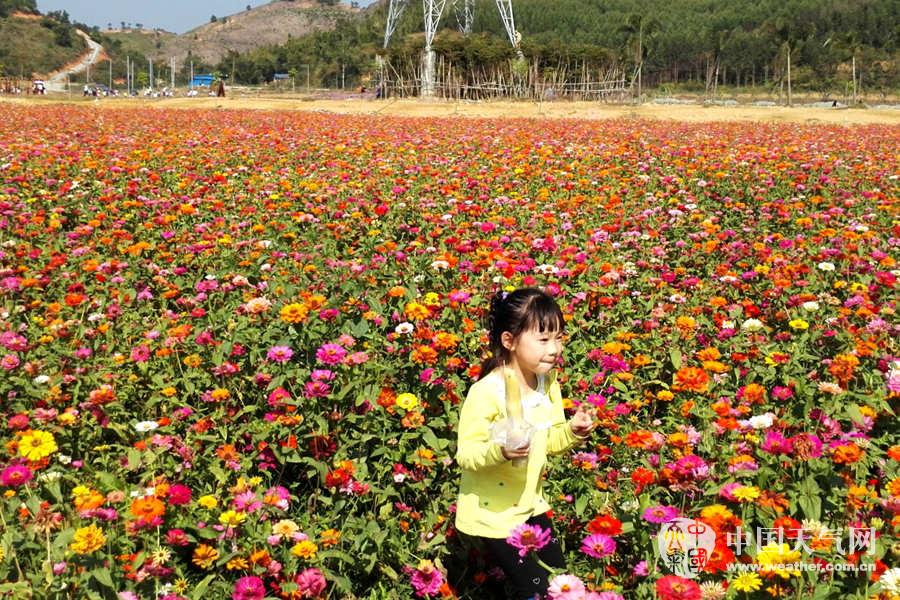 小女孩站在花海中拍照。(摄影:聂沛彬)