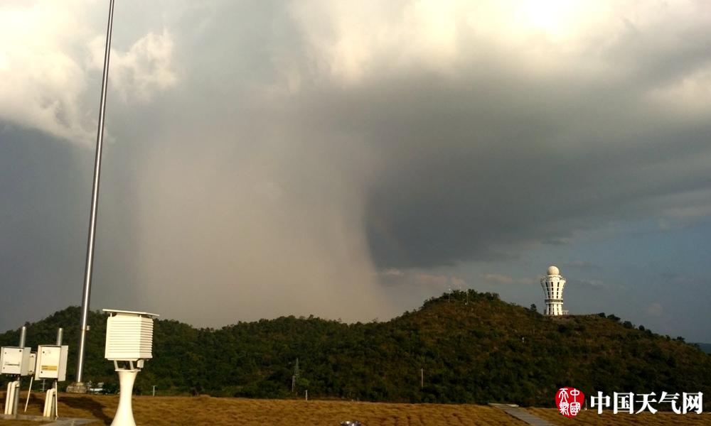 崇左市天气雷达旁边的雨幡清晰可见(摄影:覃瑞丹)