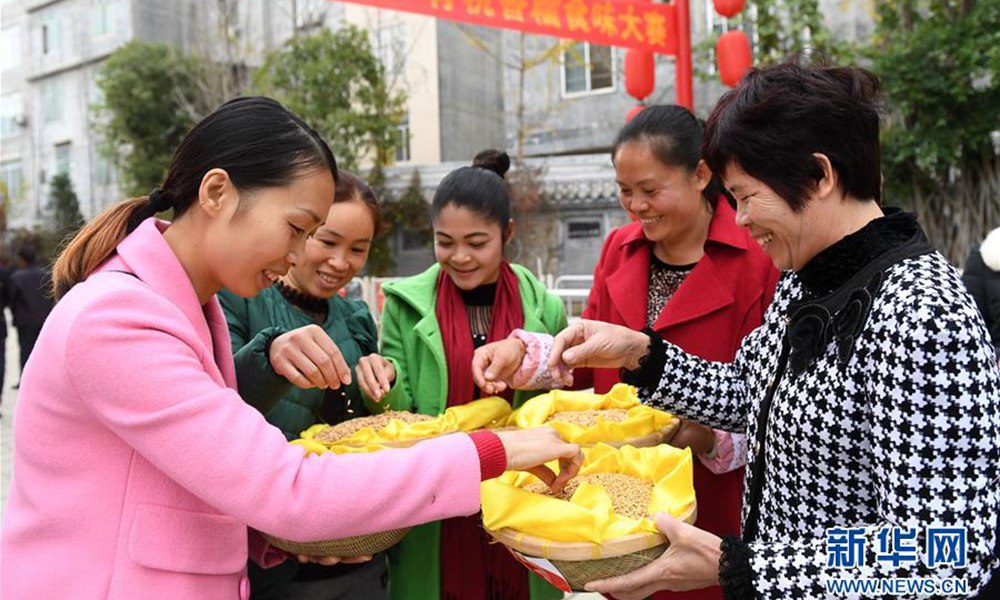 12月20日,在广西靖西市小城故事小区,村民在互相比较各自带来的香糯。(摄影:陆波岸)