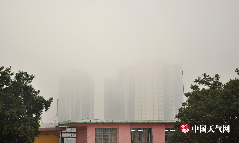 昭平地王大厦在大雾中若隐若现(摄影:吴健杰)