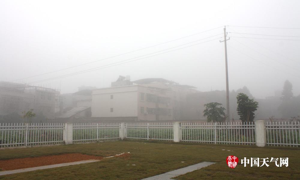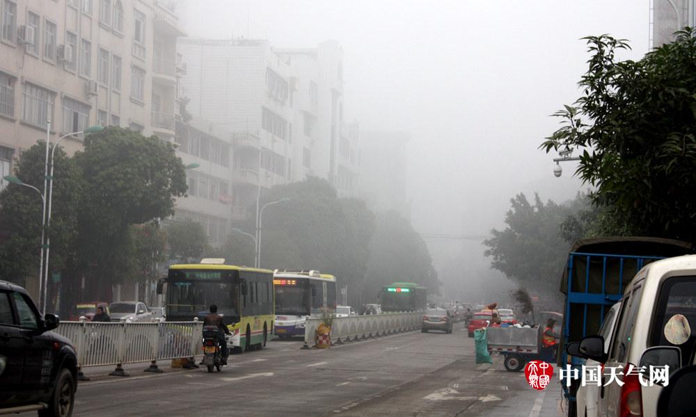 龙圩出现大雾天气车辆减速慢行(摄影:吴满春)