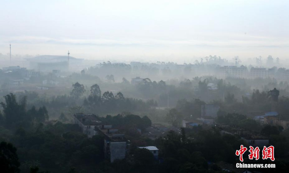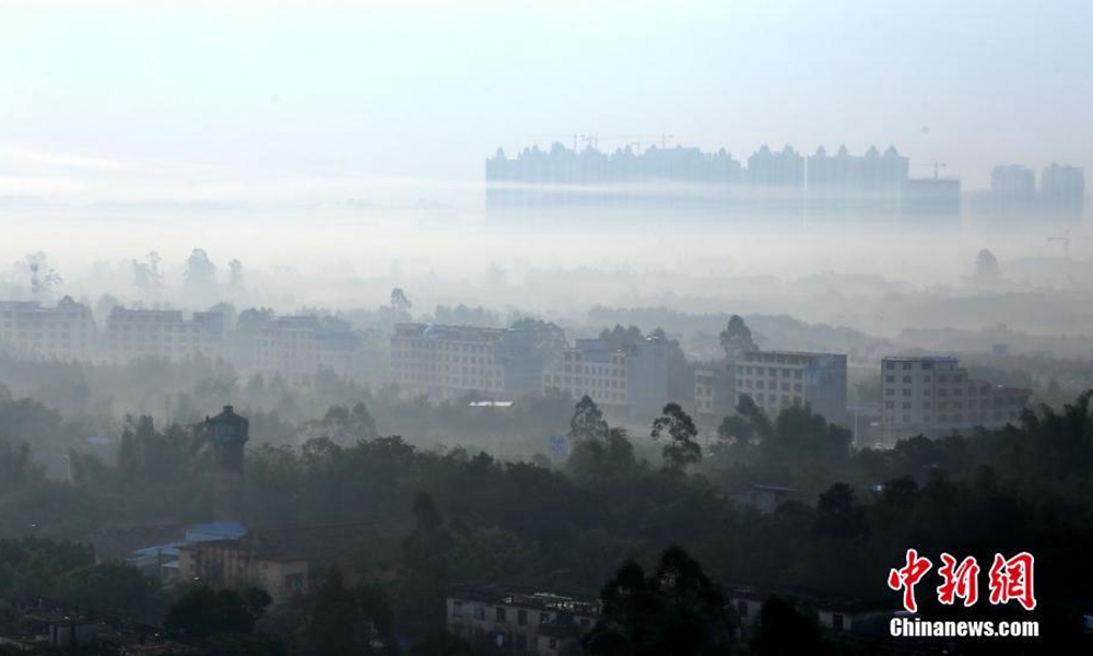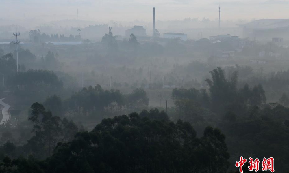 4日早上,广西钦州市高薪技术产业园区上空出现平流雾(摄影:凌福龙)