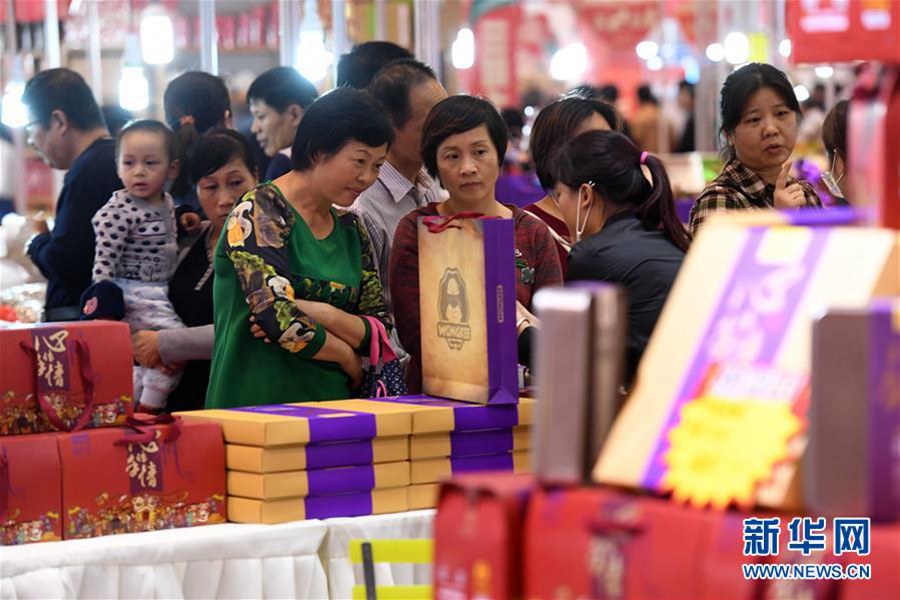 1月7日,市民在年货博览会上选购食品。(新华社记者 周华 摄)