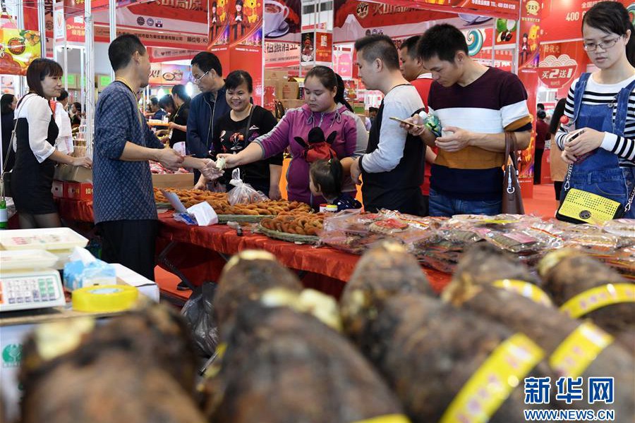 1月7日,市民在年货博览会上选购土特产。(新华社记者 周华 摄)