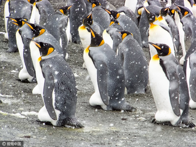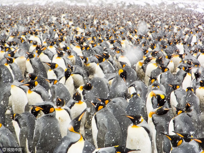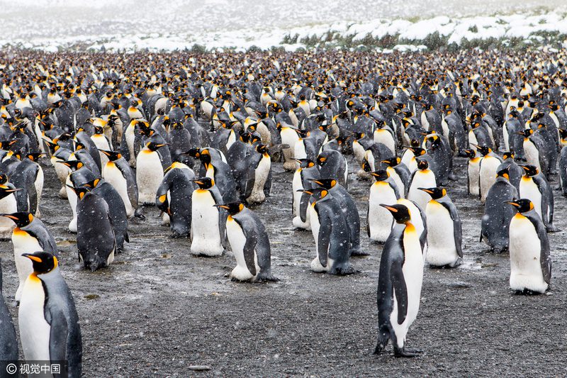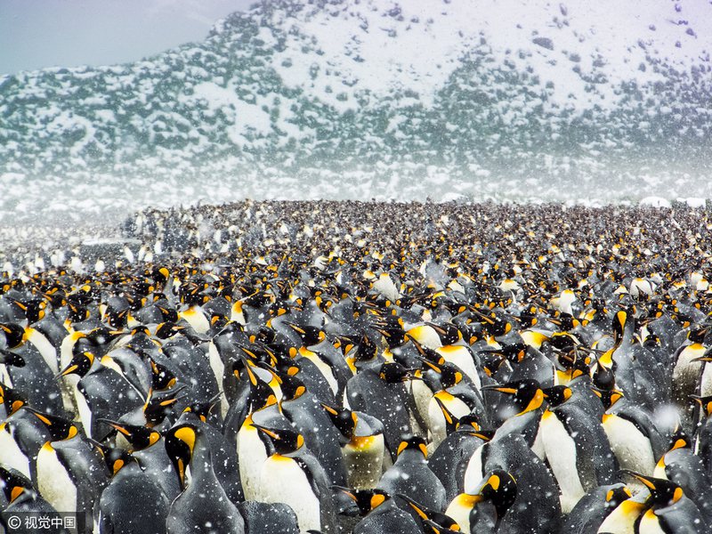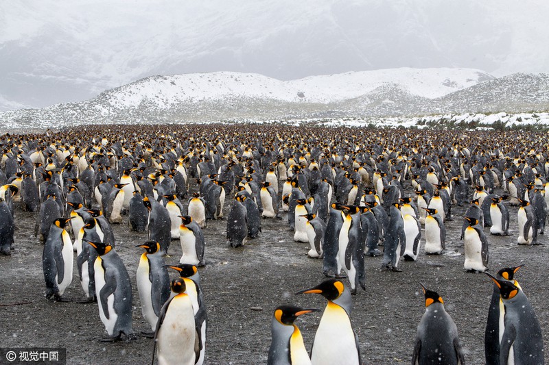 2017年1月11日讯,南乔治亚岛和南桑德韦奇岛,尽管气温降至零下,超过25万只帝企鹅聚集在海滩上,有些可以很方便的下水捉鱼,喂养宝宝。退休的工程师Ofer Agiv游览南极洲时拍下了这些震撼的场面。Solentnews/视觉中国