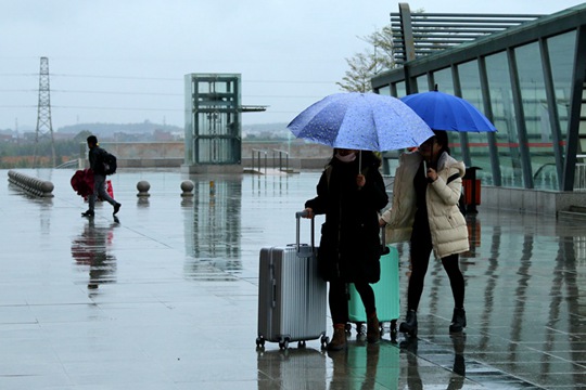 由于春运首日南宁天气阴冷,南宁铁路公安处民警特意准备了热腾腾的姜糖水,为匆匆赶车的旅客送去温暖。(摄影:刘英轶)
