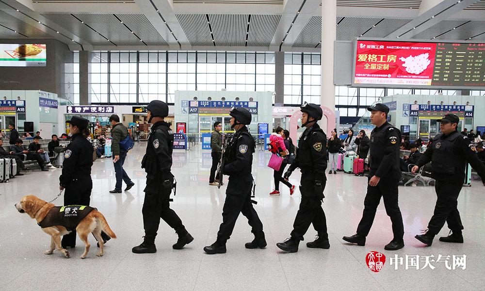 春运期间,南宁铁路公安处加强了武装巡逻力量外,还增加了警犬巡逻。警犬与民警密切配合,共同做好旅客们的“安全卫士”。(摄影:刘英轶)