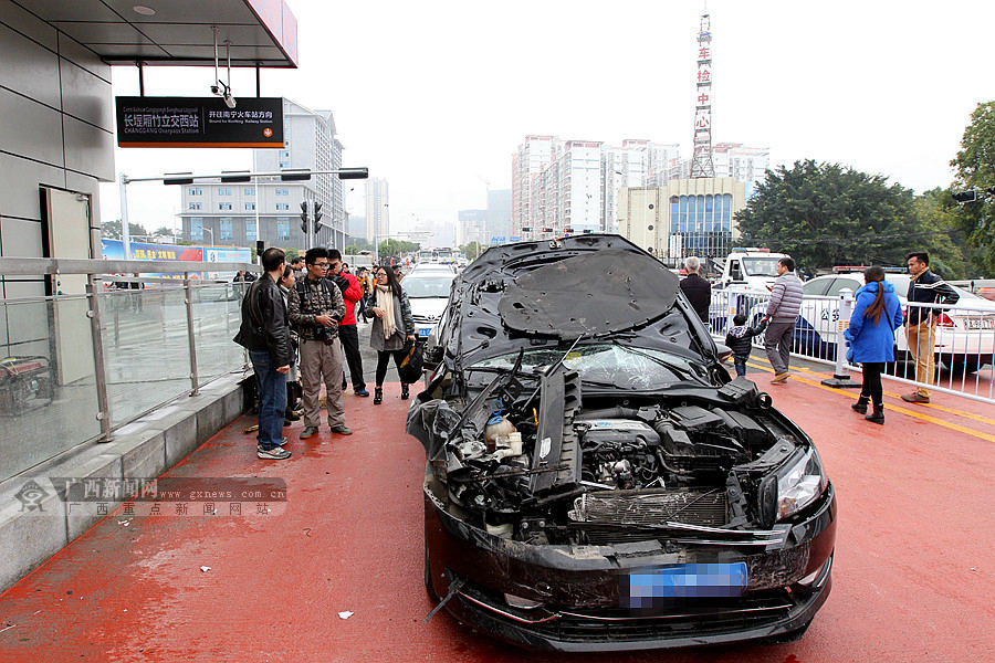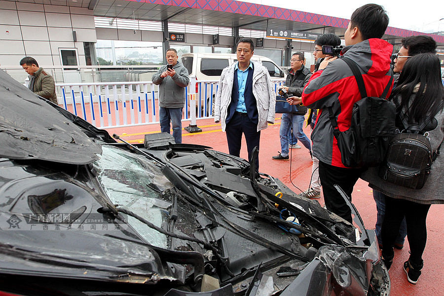 BRT专用车道成为此次事故受损车辆疏导通道。(摄影:邓昶)