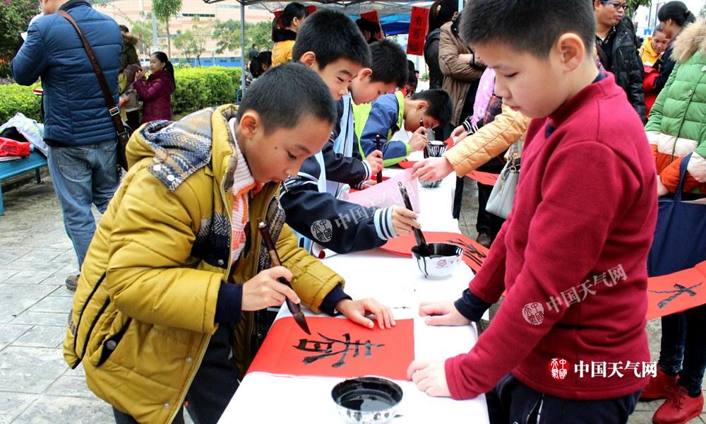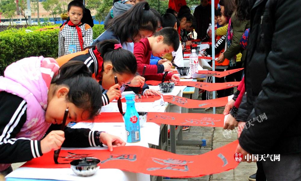 小伙伴热情相助小书法家完成作品(摄影:周冬静)