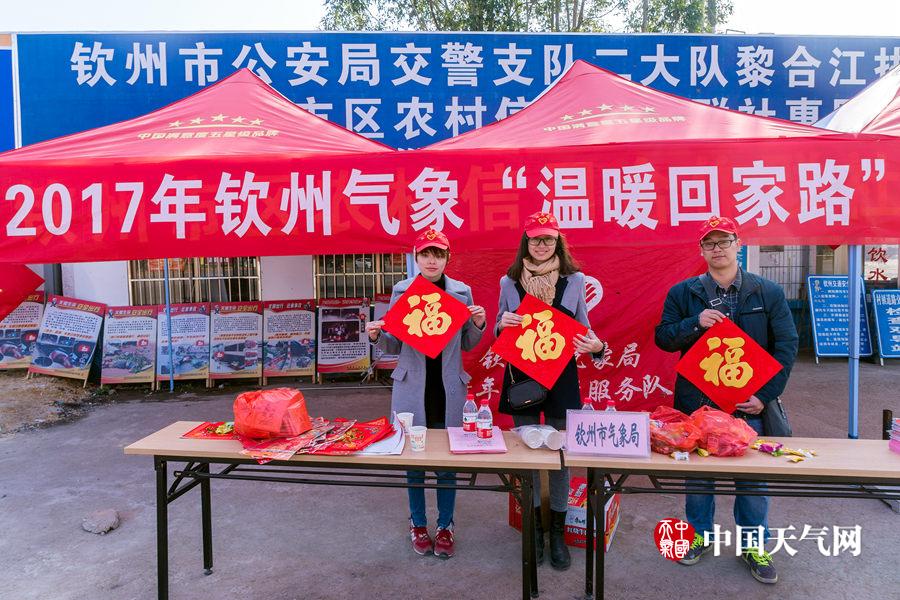 钦州气象青年志愿服务送祝“福”。(摄影:李斌喜)