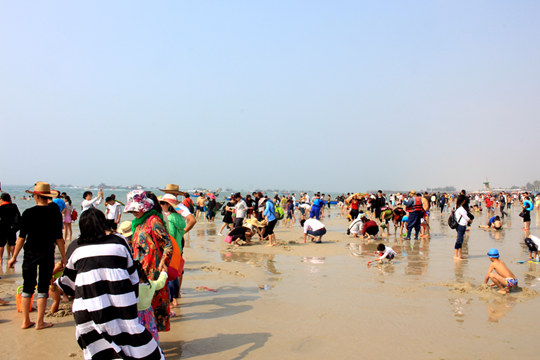 池塘一角赏鱼的人们(摄影:黄归兰)