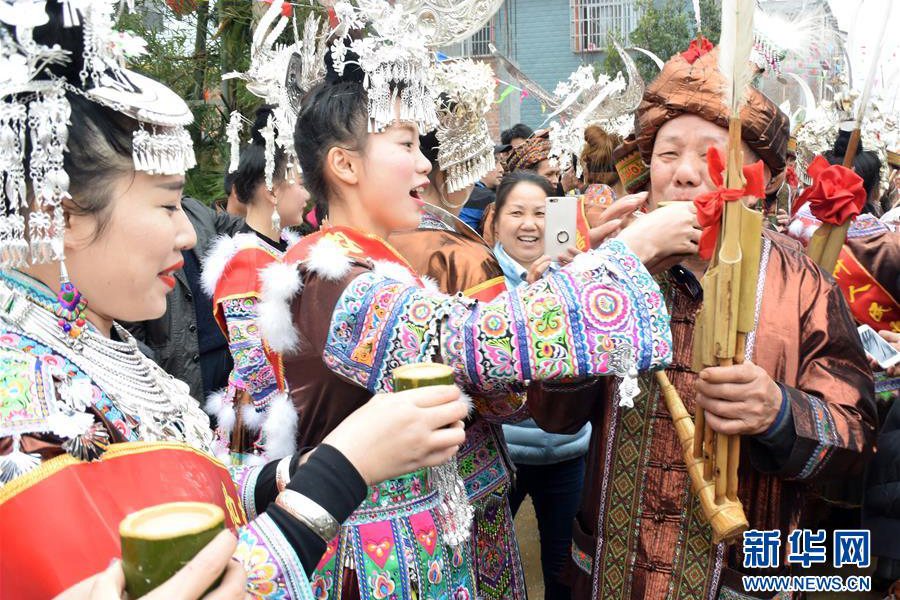 2月7日,在广西融水苗族自治县安太乡林洞村培科屯,当地群众在敬酒。(摄影:李斌)