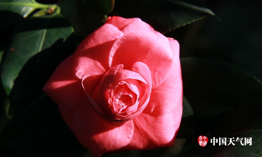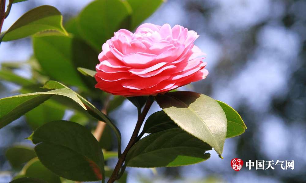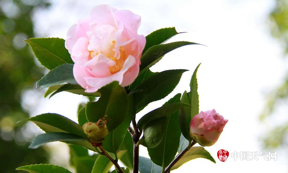 粉色的茶花俏丽绽放(摄影:郁海蓉)
