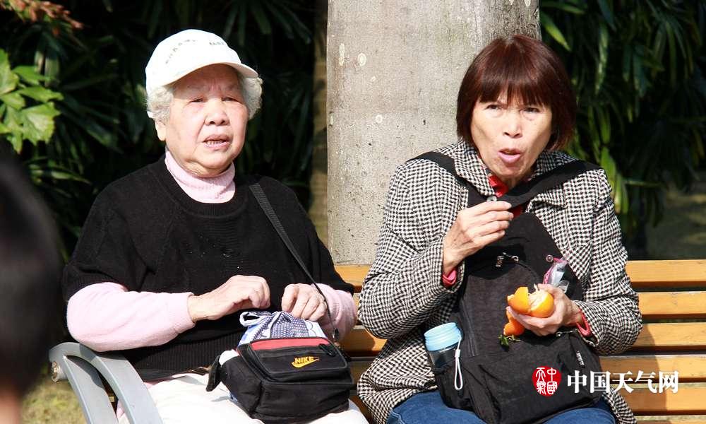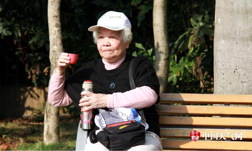 南宁城区阳光明媚,一位老人坐在公园里休息(摄影:郁海蓉)