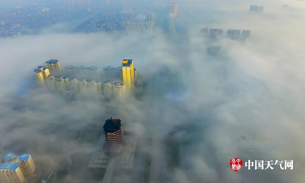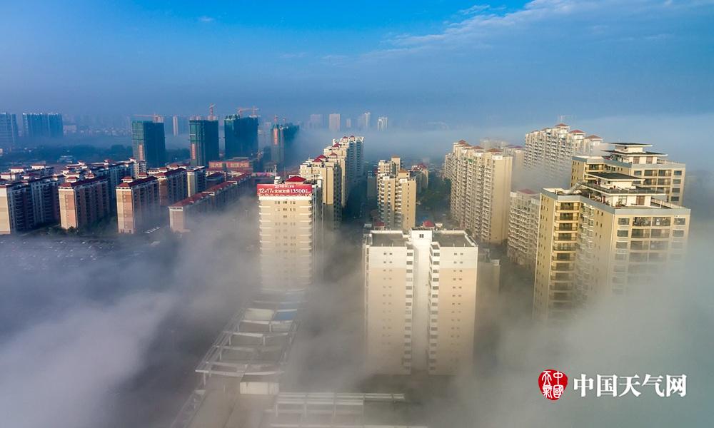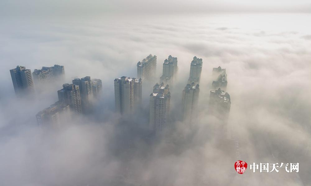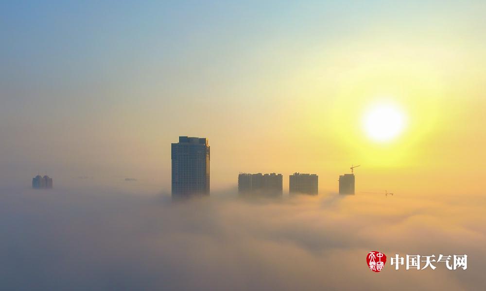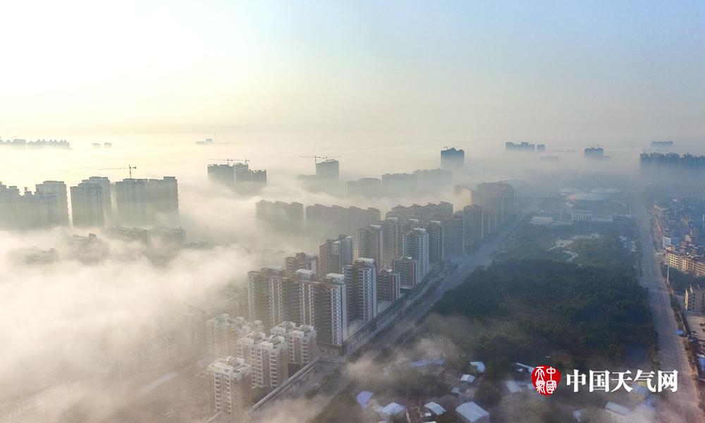2月18日早上,钦州市城区出现大面积平流雾,整个城市弥漫在漂亮的平流雾中。(摄影:李斌喜)