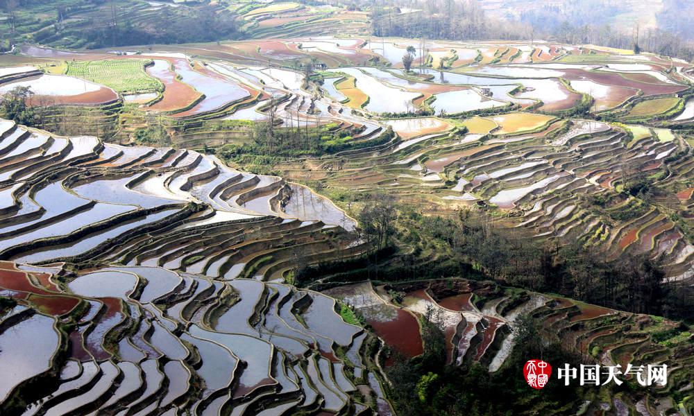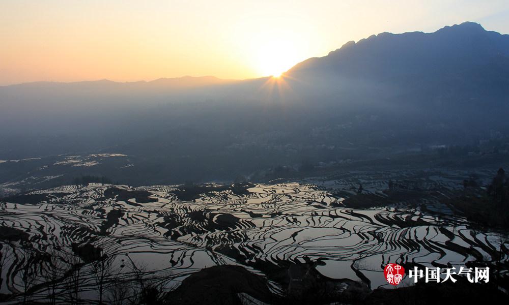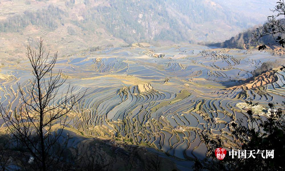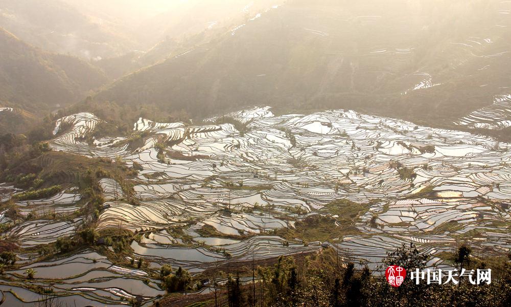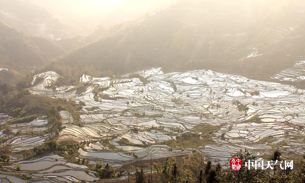 梯田在阳光下水光潋滟(摄影:韦江红)
