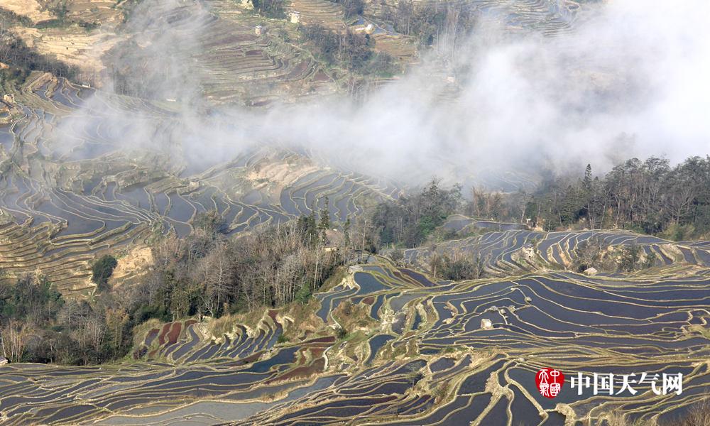 云南元阳梯田层层叠叠美如画 游客接踵而至
