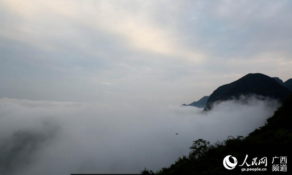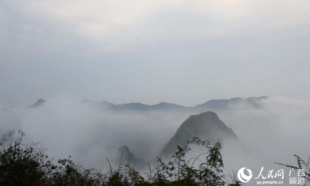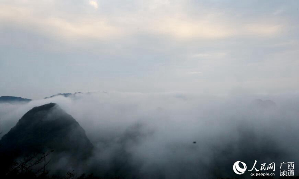 人民网融安2月27日电 2月26日,广西柳州市融安县东起乡雨后清晨出现云海美景。当日清晨,融安县东起乡雨后初晴,群峦在翻腾的云海中若隐若现,宛如仙境一般,蔚为壮现。(庞革平、谭凯兴)