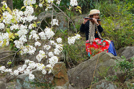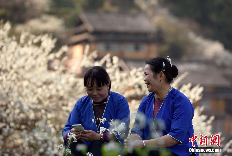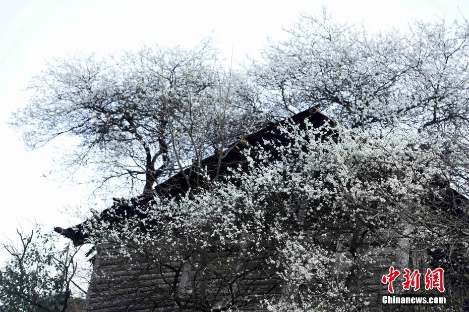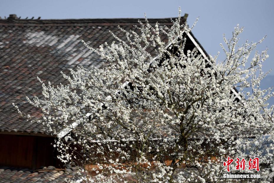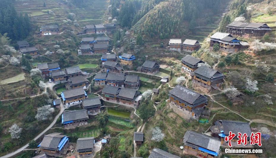 3月1日,广西三江侗族自治县八江镇塘水村归大屯的2000余株李树花次第绽放,深山侗寨好似“飘雪”一般,淹没在雪白的李花中。近年来,三江县大力推进生态乡村建设,按“山山有茶、田田有鱼、村村有果”等目标打造农文互融、农旅结合的特色生态宜居乡村,侗乡面貌焕然一新。图为盛开的李花与侗族木楼交相辉映。龚普康 摄