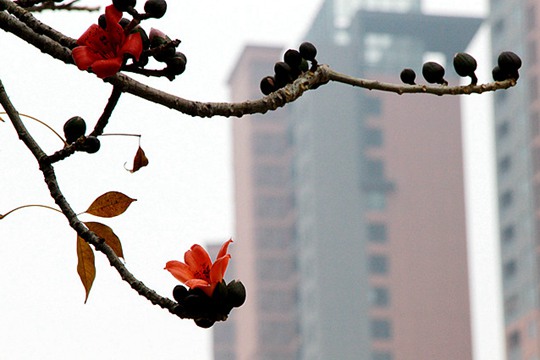清新淡雅的李花夹杂着点点翠绿(摄影:苏家敏)