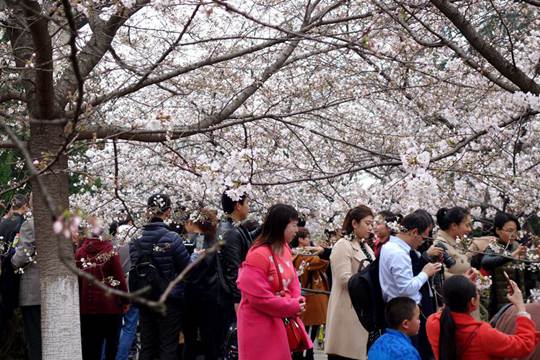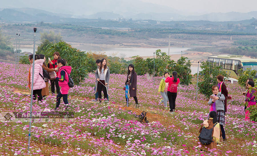 游客们在花丛里玩起了自拍。广西新闻网通讯员农飘 杨宇澄 黄天成供图