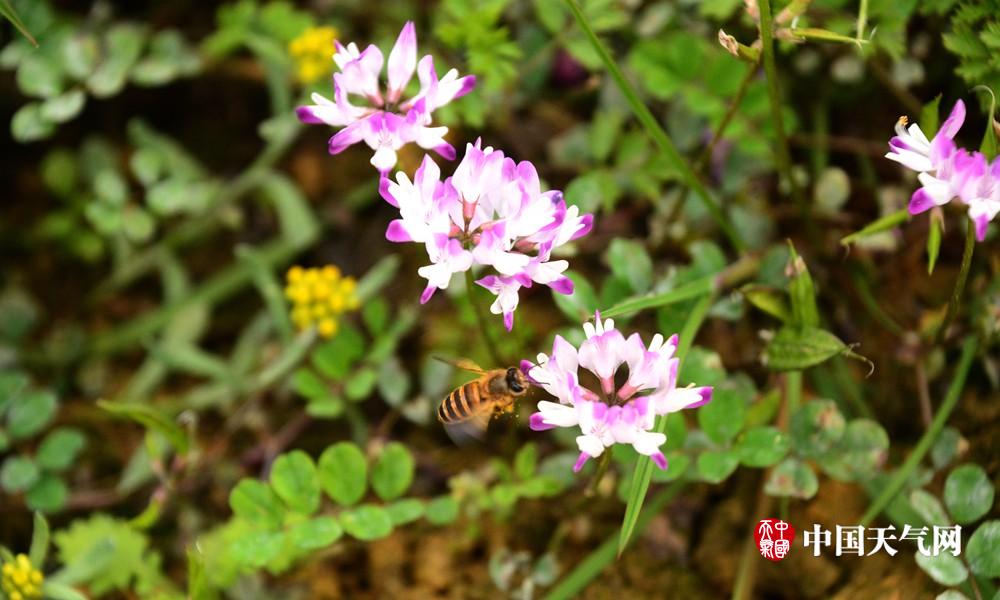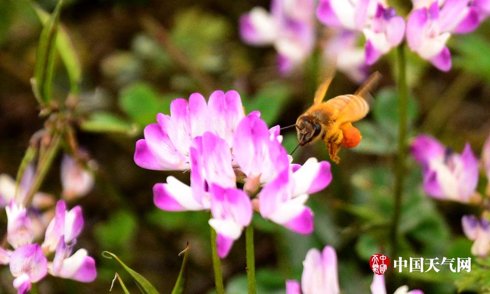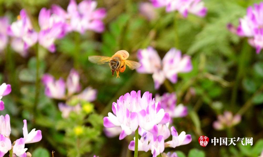 忙采蜜的蜜蜂飞舞着。(摄影:易禹成)
