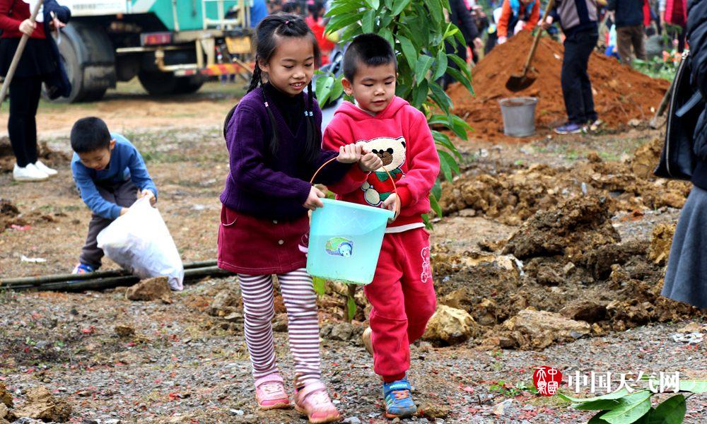 团结协作给树苗提水(摄影:周冬静)
