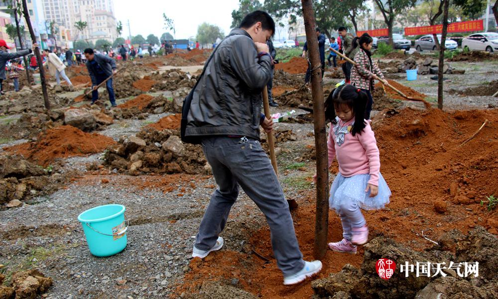 参加植树的父女(摄影:周冬静)