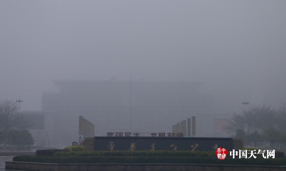 平果县行政大楼被大雾笼罩着(摄影:林金红)