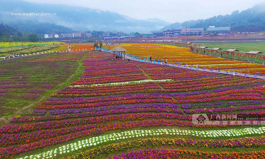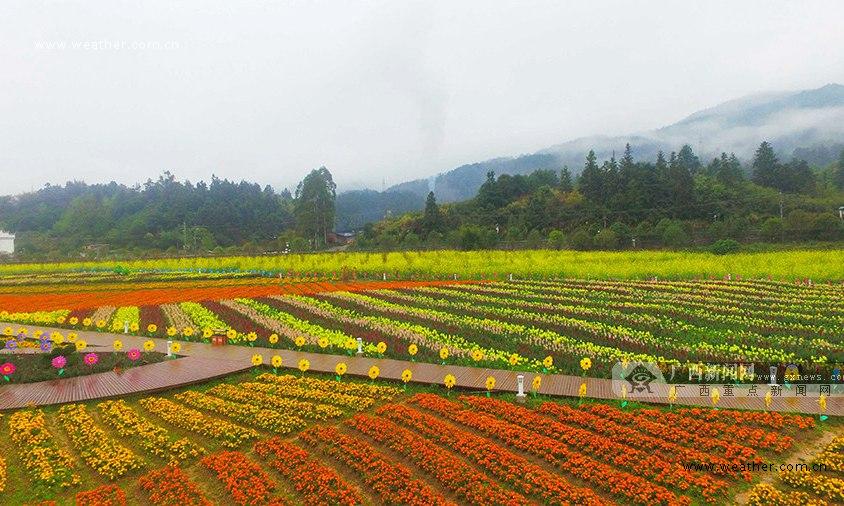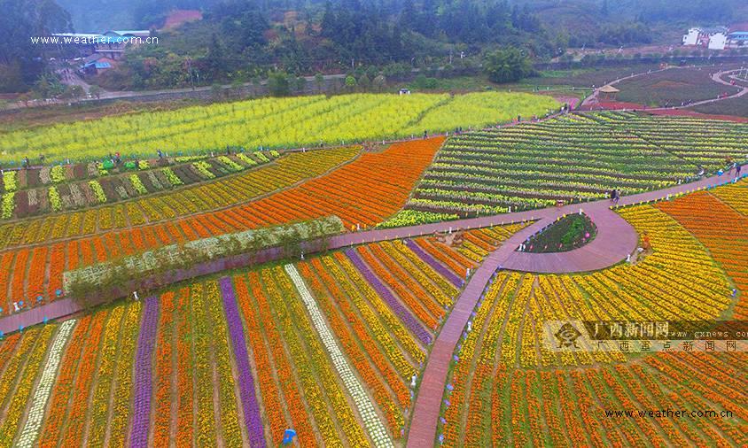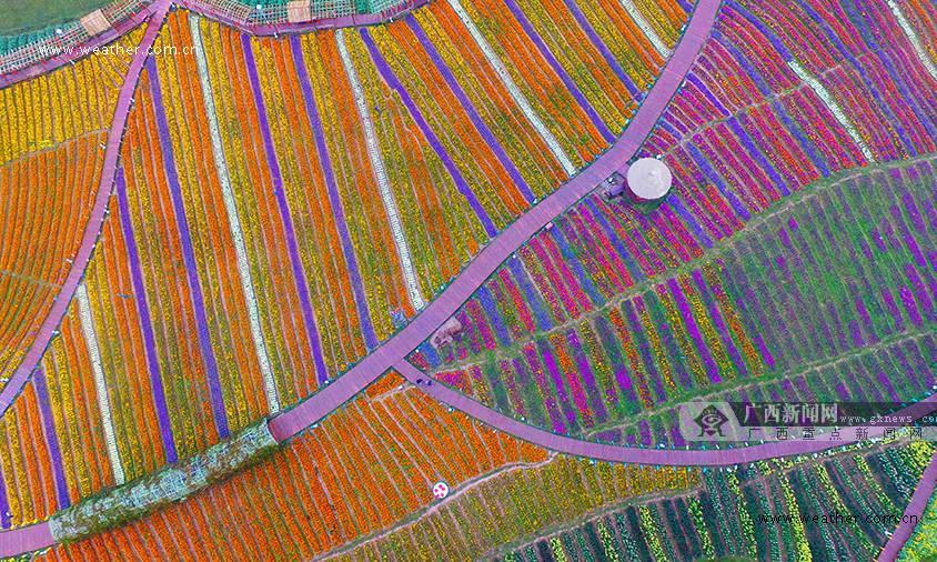 航拍广西贺州市黄姚花海。(摄影:广西新闻网通讯员 谭凯兴)