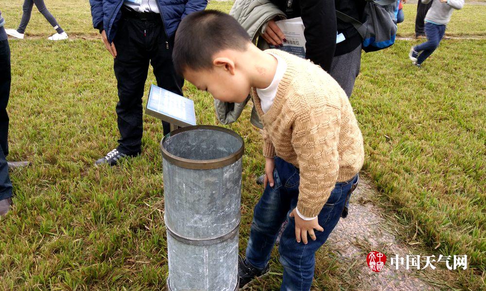 小朋友认真盯着量雨筒看(摄影:梁文希)