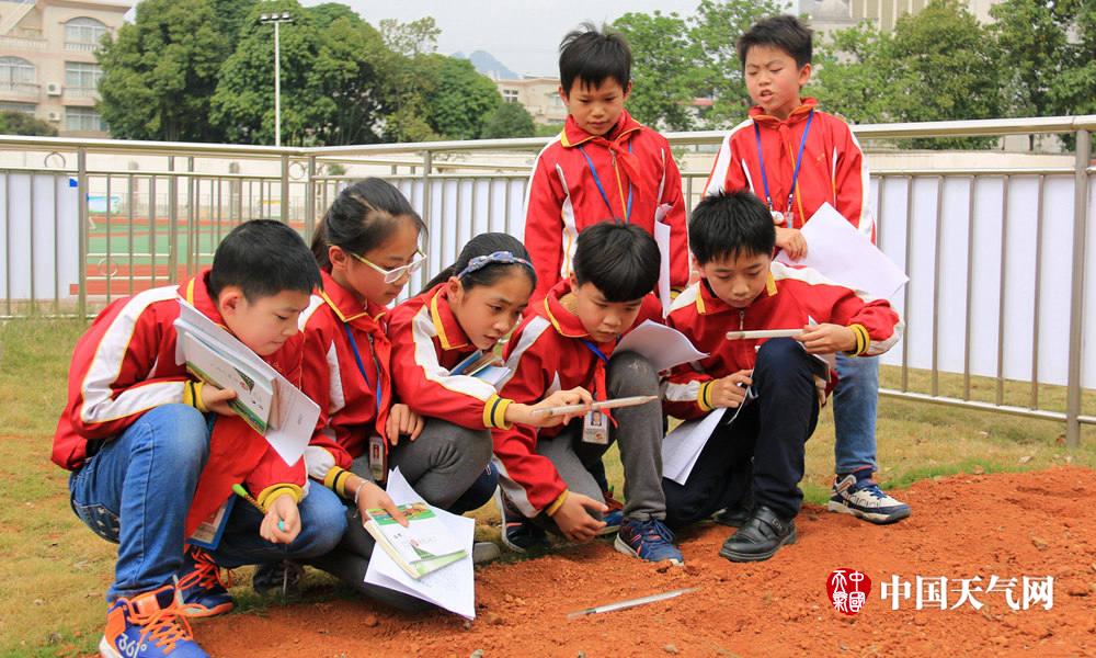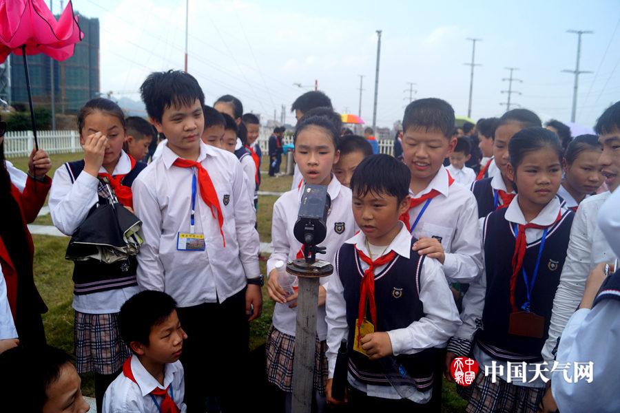 在校园标准化气象站观测的小小气象员(摄影:董州)