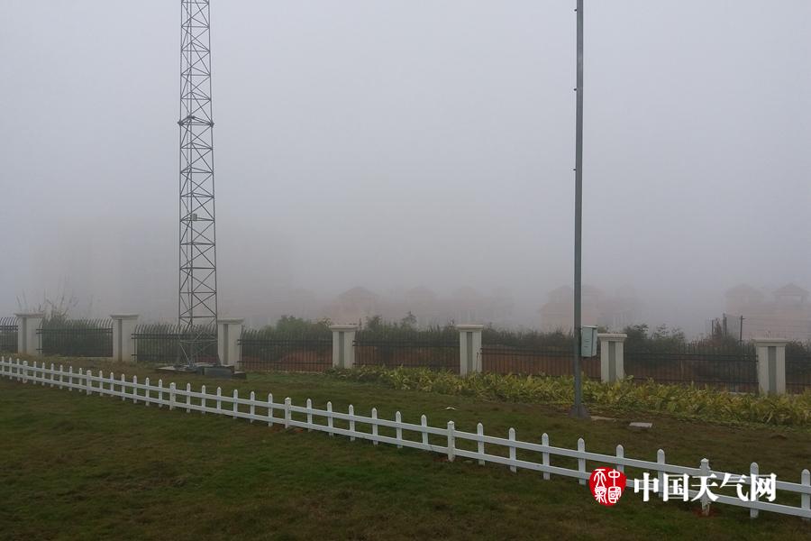 从气象站望去,远处的建筑已经模糊不清(摄影:王达)