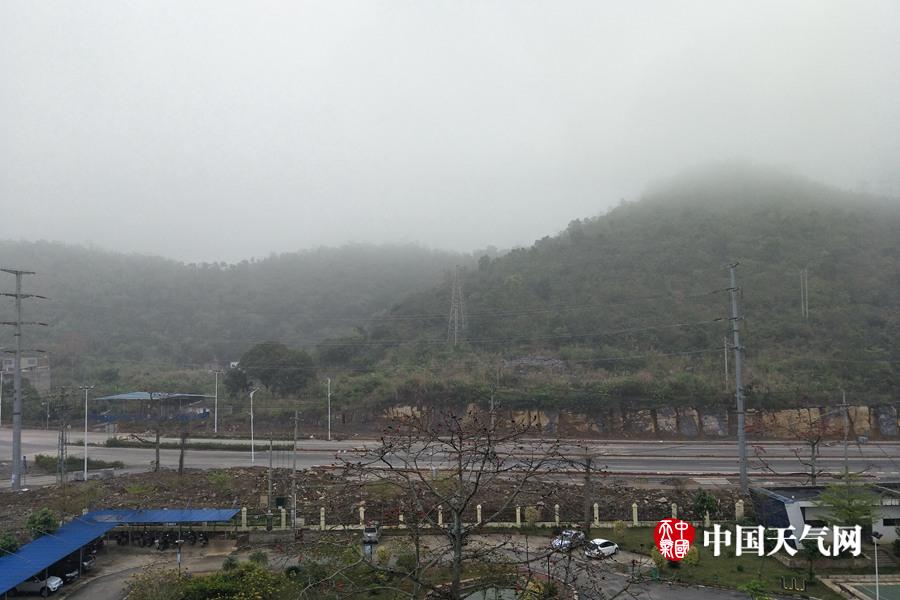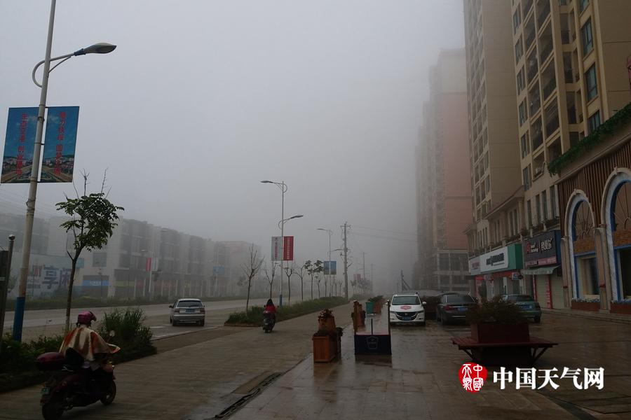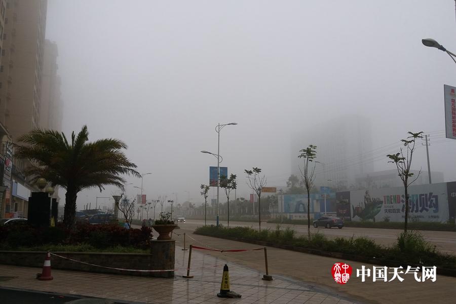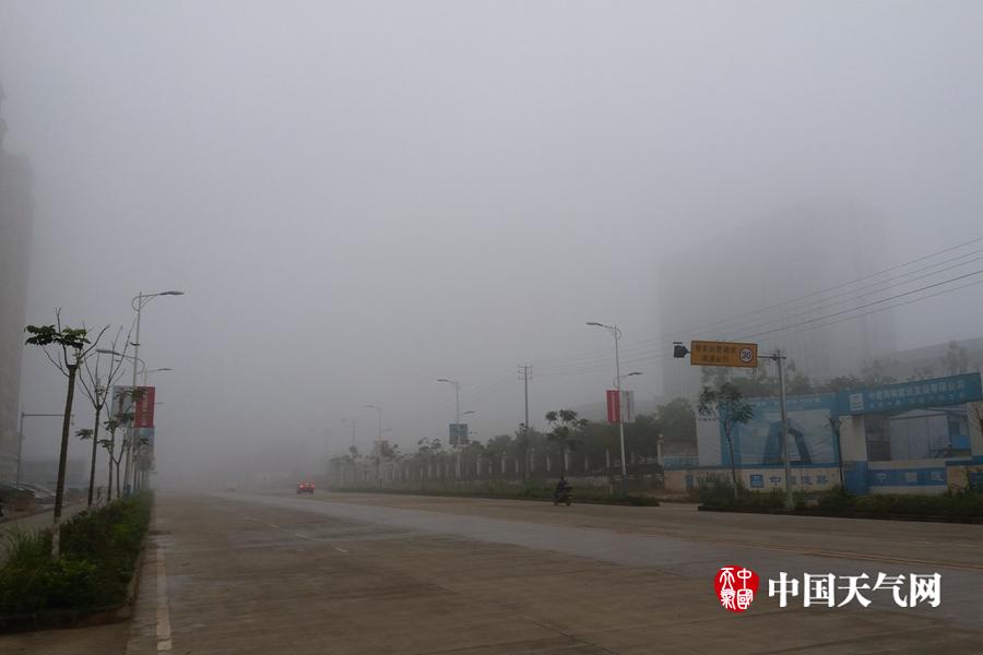 扶绥县大雾弥漫,远处建筑已经看不清(摄影:王达)