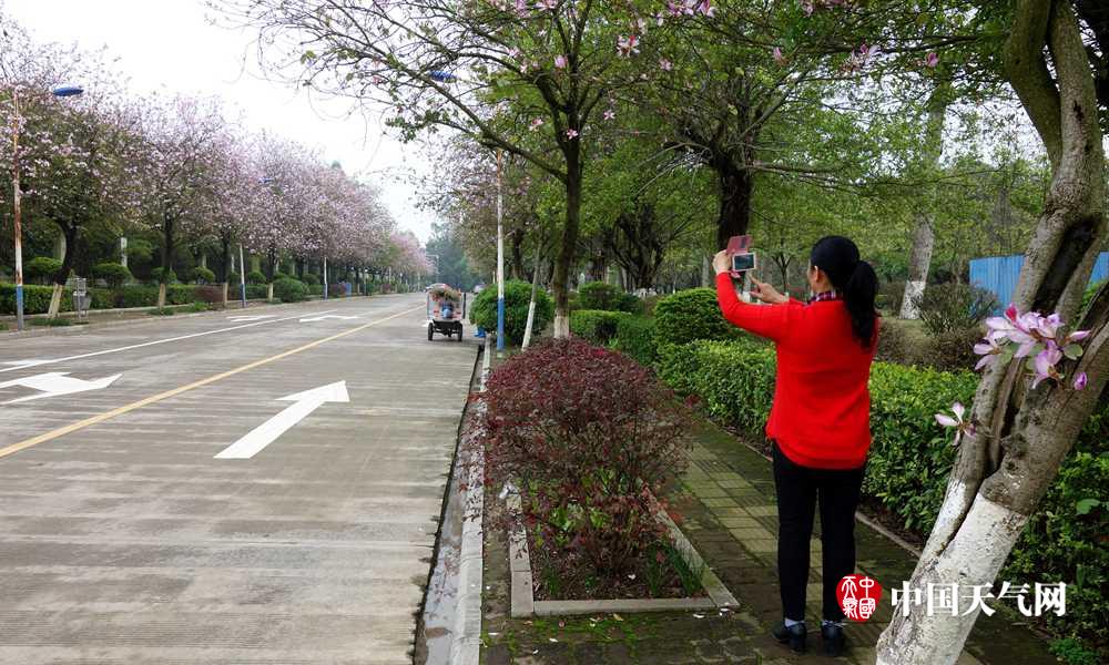 道路两侧紫荆花盛开(摄影:李荣迪)