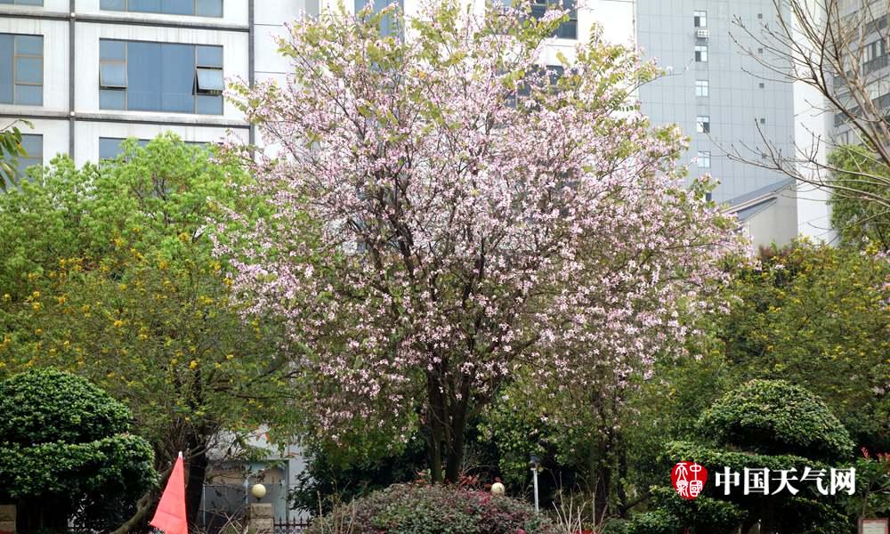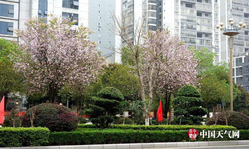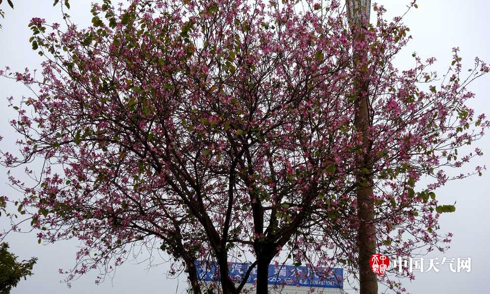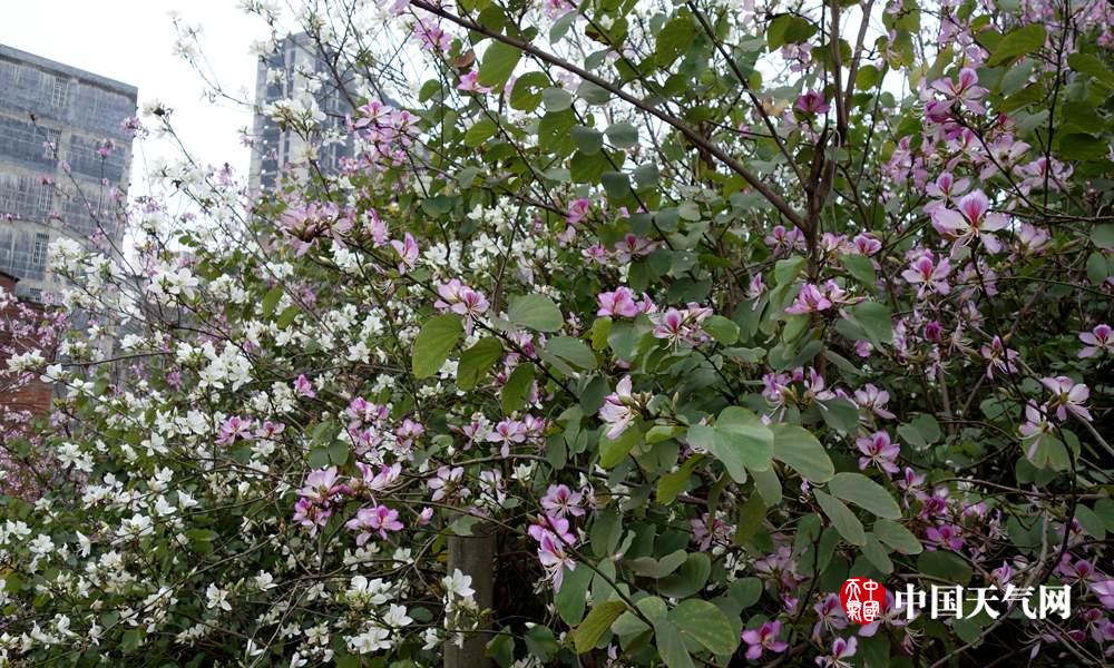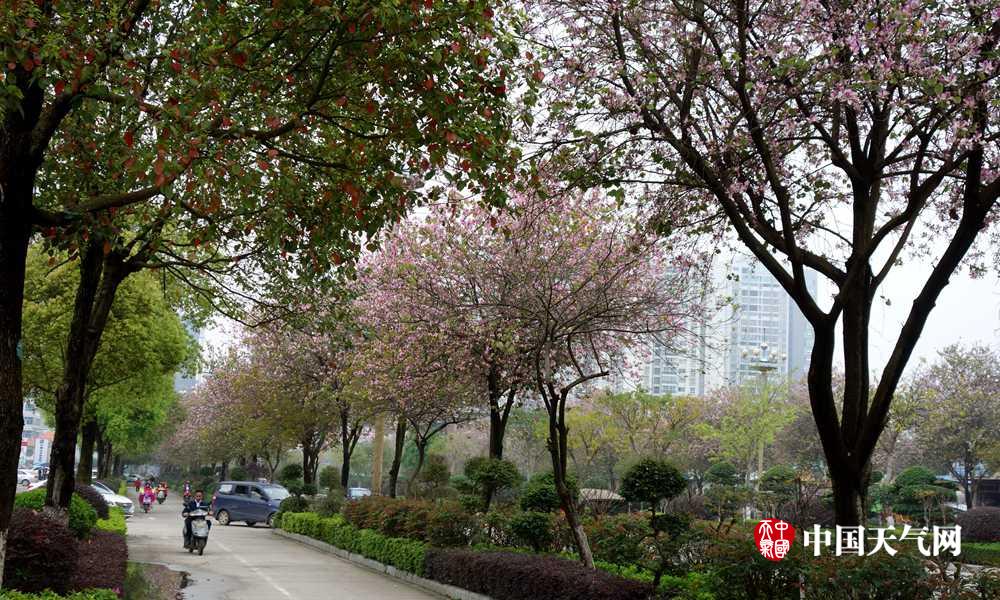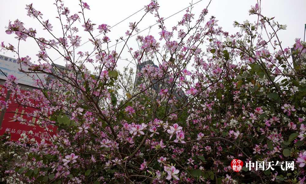 开放的紫荆花点缀来宾城(摄影:李荣迪)