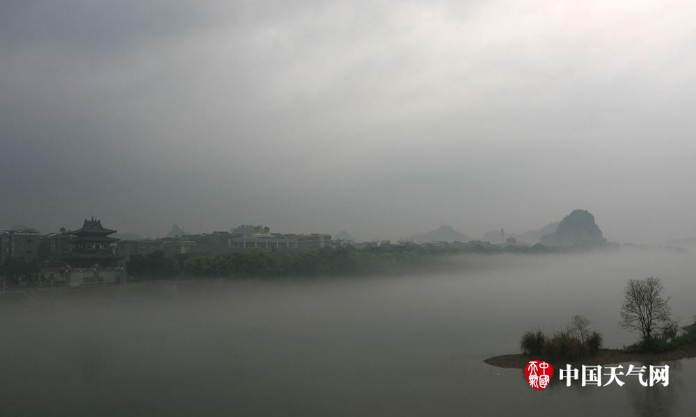远远望去,桂林城仿佛都已披上了一层薄纱(摄影:方琼玉)