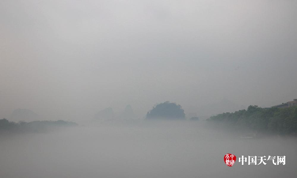 漓江仿佛盖着一层洁白的丝被(摄影:方琼玉)