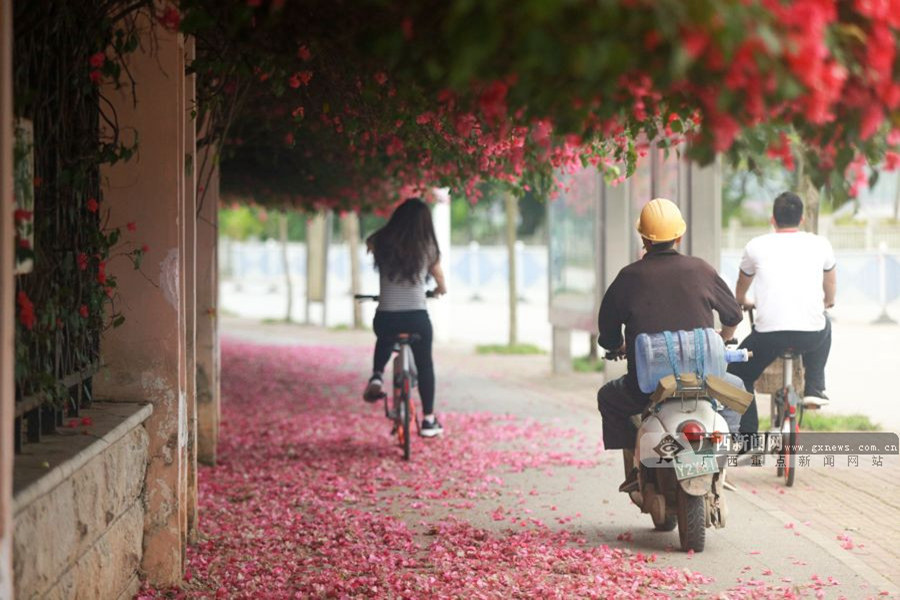 盛放的三角梅染红一条街。(摄影:广西新闻网记者 黄河畅)