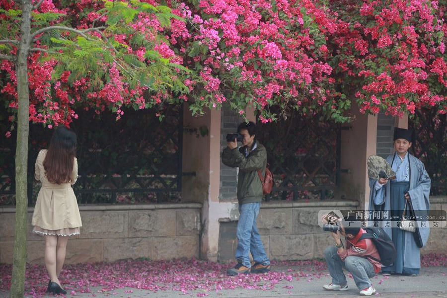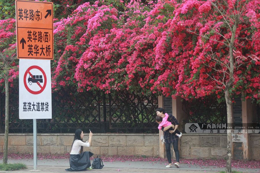 青环路盛放的三角梅吸引了众多摄影爱好者前来拍照。(摄影:广西新闻网记者 黄河畅)
