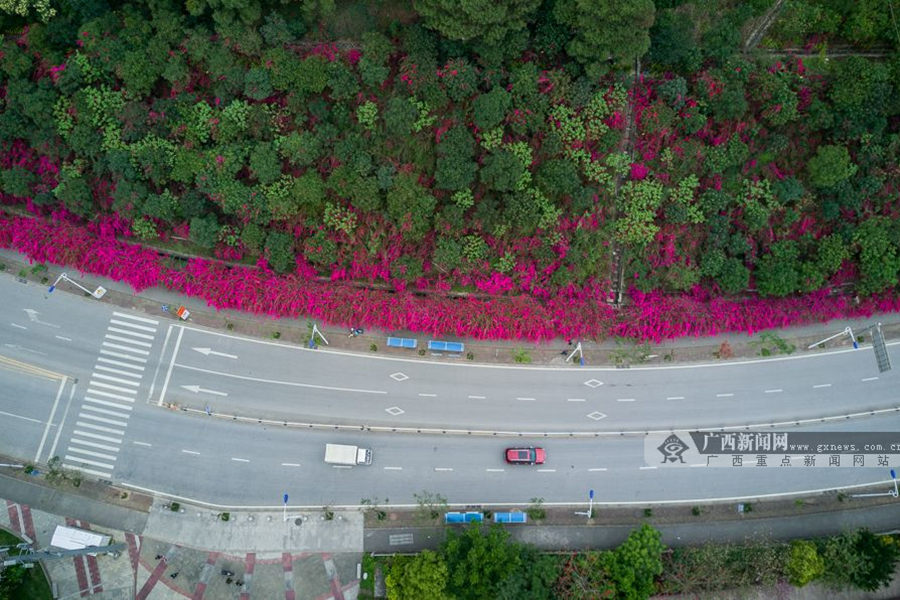 三角梅沿着青环路盛放。(摄影:广西新闻网记者 黄河畅)