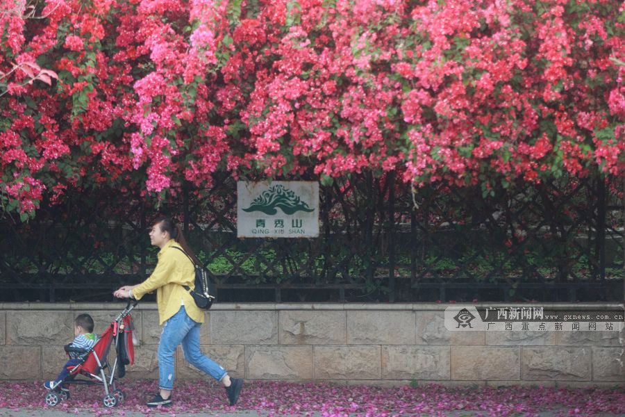 市民们纷纷停下脚步赏花、拍照,乐不思归。(摄影:广西新闻网记者 黄河畅)